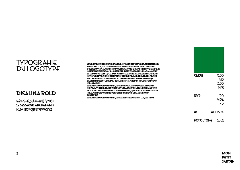 J’ai accompagné ce symbole de la typographie Disalina : son tracé organique apporte la touche finale nécessaire pour accentuer l’aspect vivant et floral de l’identité visuelle.